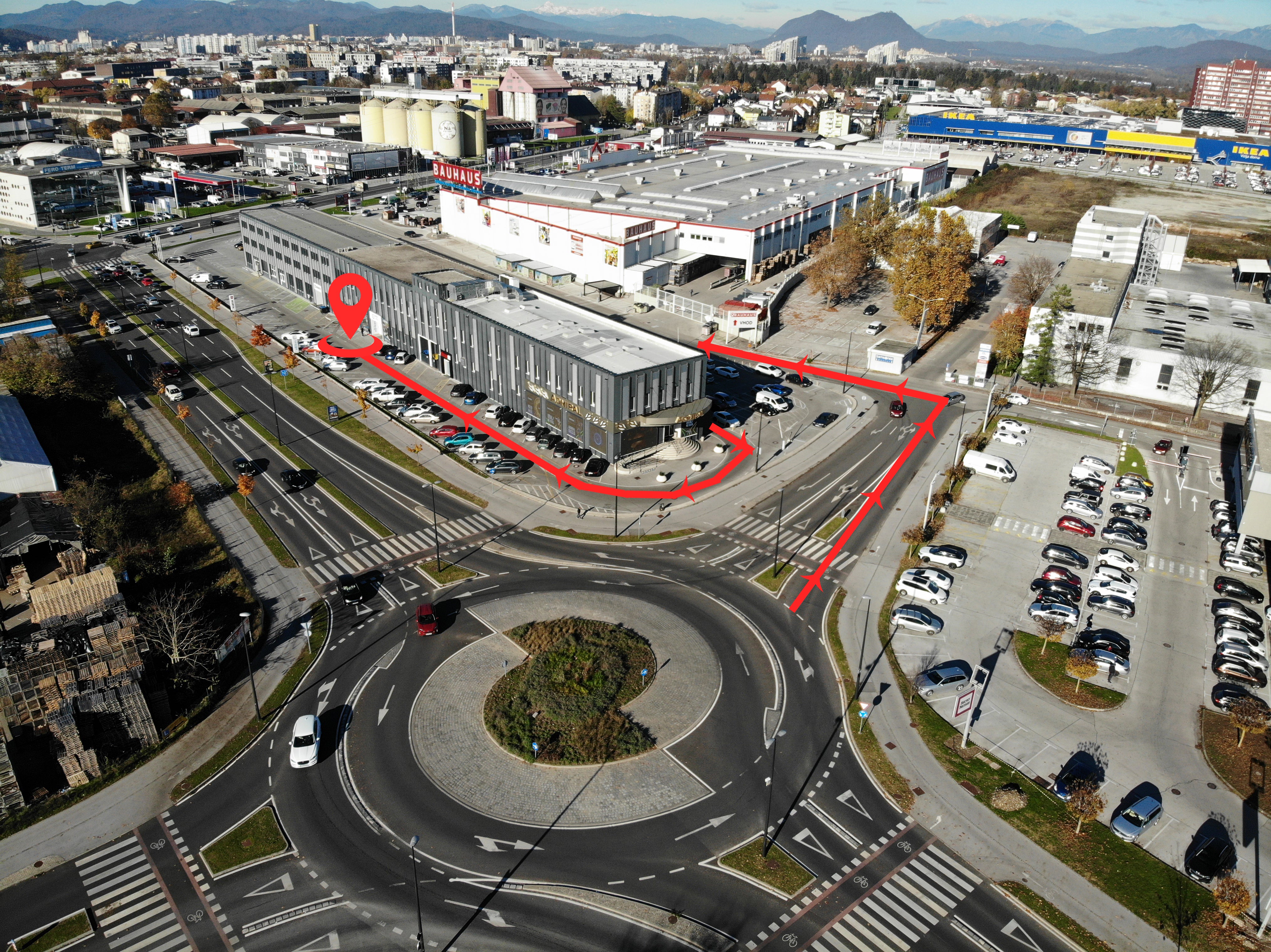 VHOD z avtom je iz strani Bauhausa in po LEVI strani okoli objekta mimo CASINO ADMIRAL.